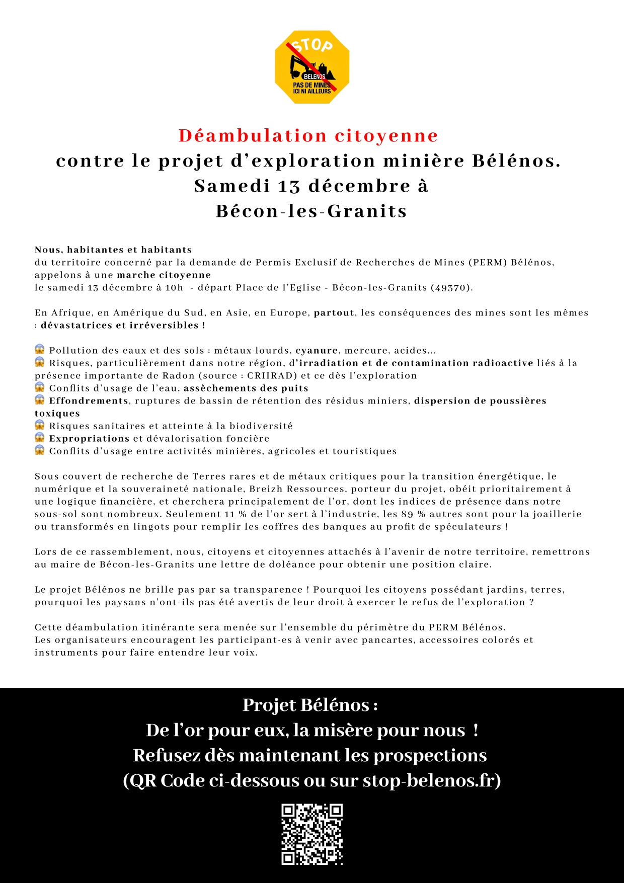 Contre les nouvelles mines. Manifestation à Bécon-les-Granits samedi 13 décembre 2025